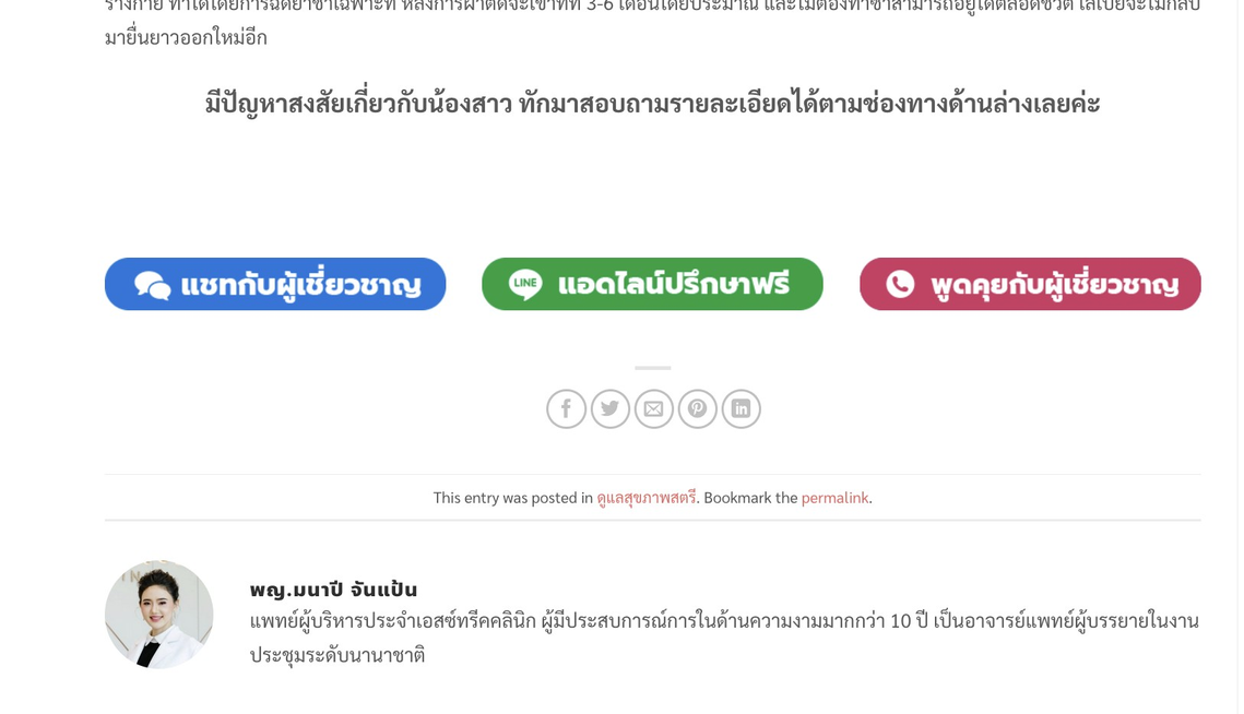 ปรึกษาโดยแพทย์ผู้ชำนาญการด้านนรีเวช ตกแต่งความงามและสุขภาพทางเพศ ได้ที่ :